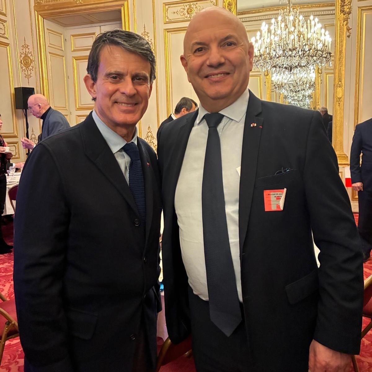 Laurent Anselmi en compagnie de Manuel Valls à un dîner-conférence au Sénat